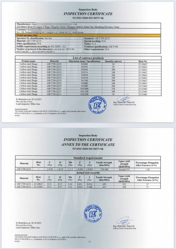 斯洛伐克 NB 2408 簽發(fā)的 EN10204-3.2模版