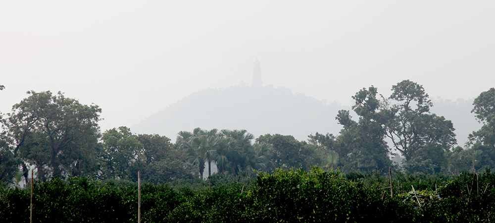 來到廣東新會的茶坑村,遠眺觀望,云霧間有一座忽隱忽現的塔,陽光甚好時,其中的紋絡清晰可見。