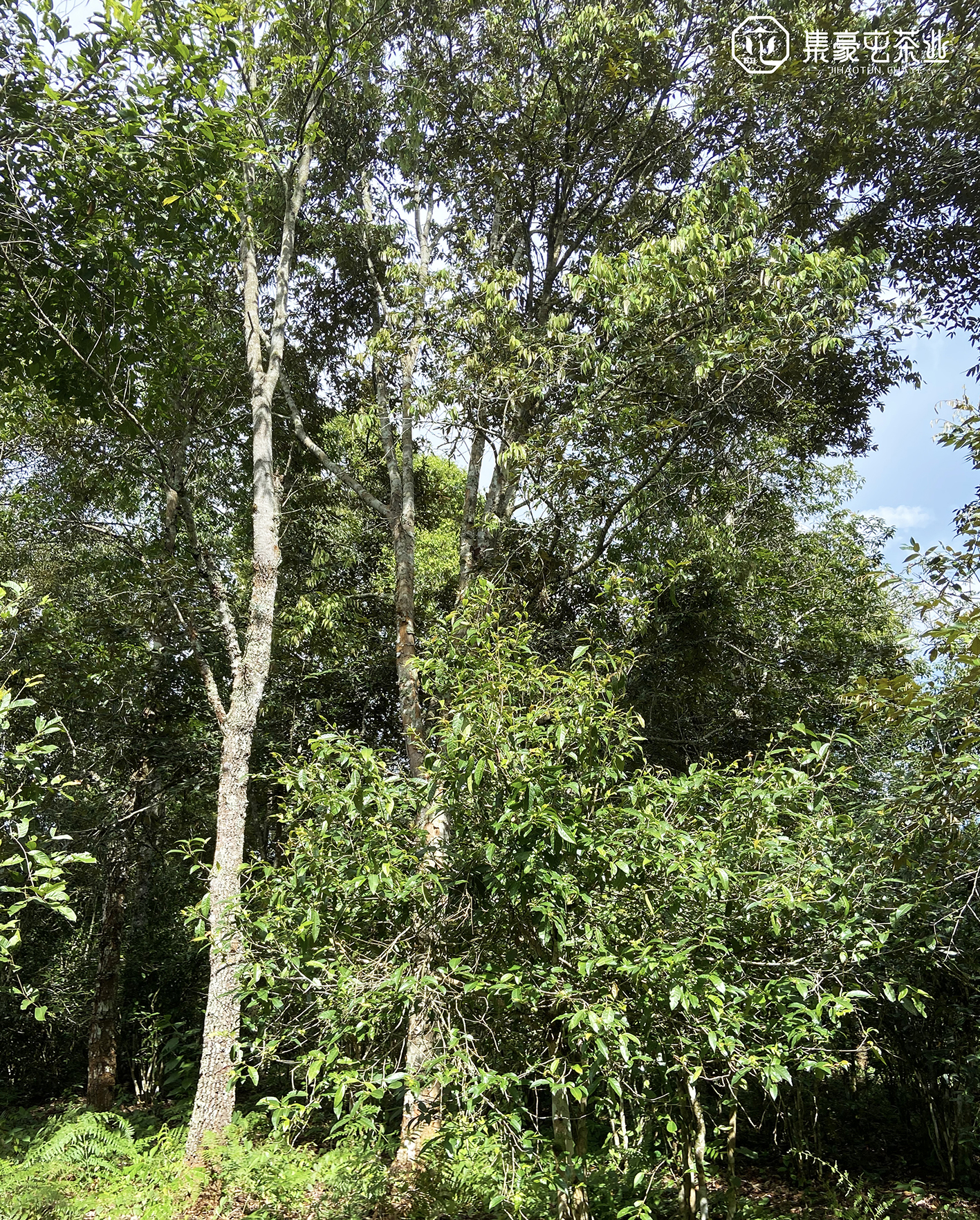 扎根于原始森林的「高桿古樹」,主桿高,沒有旁枝,只有樹冠頂部有一些枝葉,因此產(chǎn)量非常稀少。除了自然因素外,「高桿古樹」的樹形攀爬時無法借力,采摘難度較大,要當(dāng)?shù)睾苡薪?jīng)驗(yàn)的茶農(nóng)才敢爬上去。