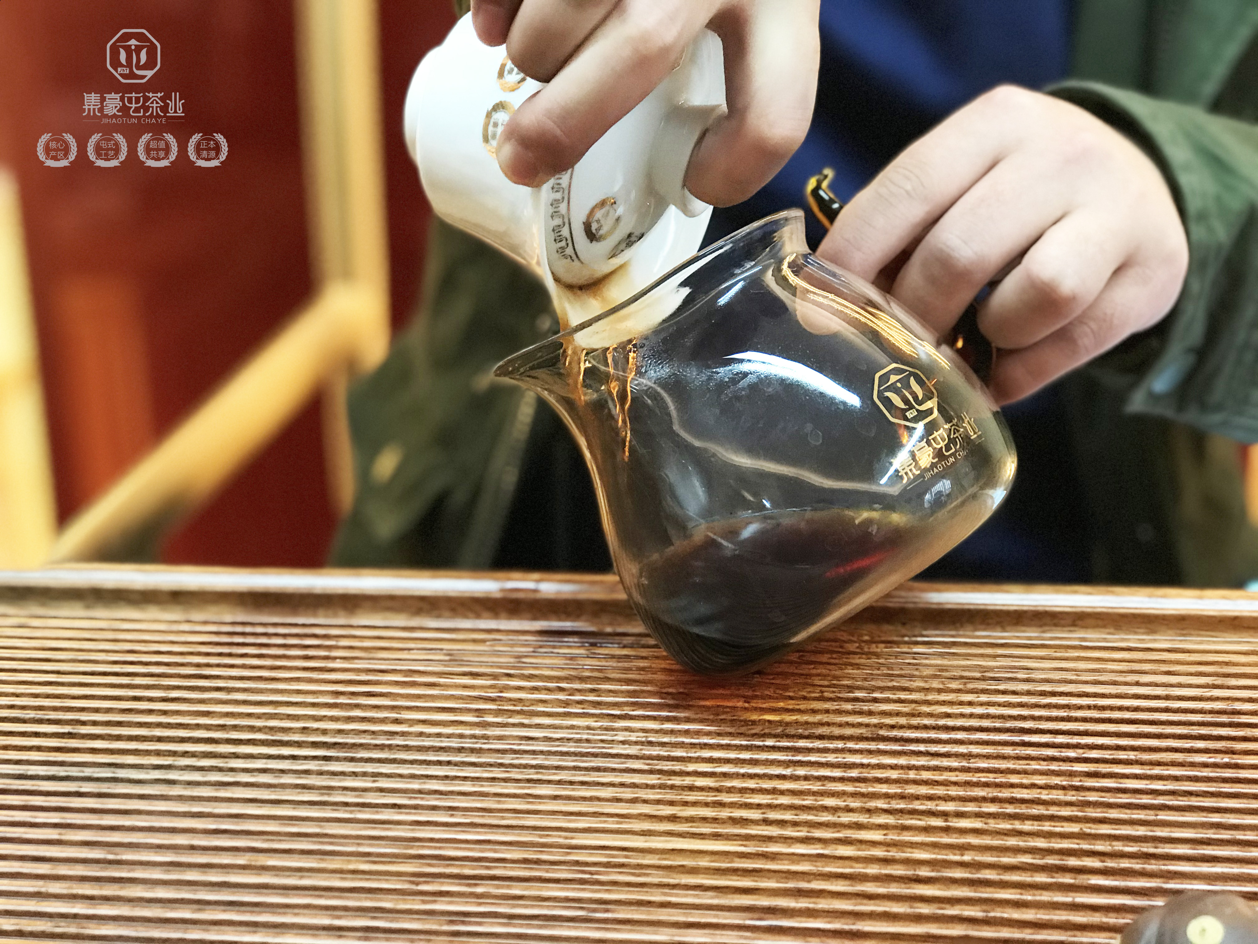 看著滾燙的水流入蓋碗沖洗著茶葉,被壓成餅狀的茶葉咕嚕咕嚕地冒著泡,很快就散開了。茶藝師說集豪屯有獨特的沖泡技巧,洗茶、潤茶的時間可以久一些,讓茶葉更快地散開。