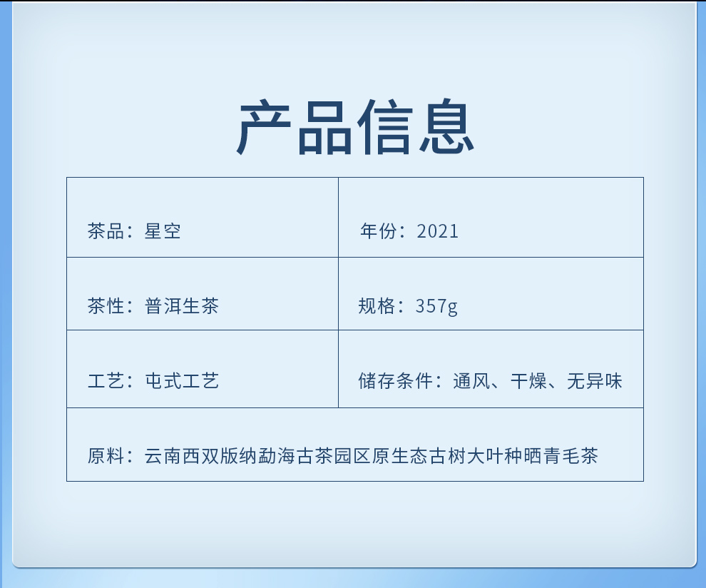 原料信息:云南西雙版納勐海古茶園區原生態古樹大葉種曬青毛茶