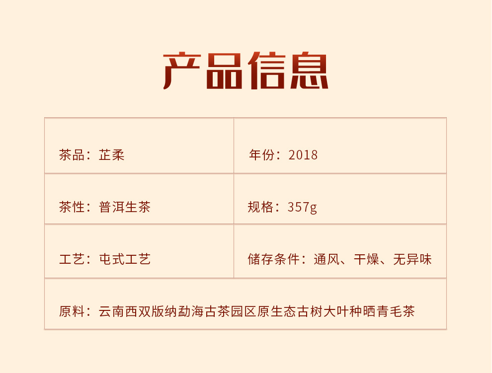 原料信息:云南西雙版納勐海古茶園區原生態喬木大葉種曬青毛茶